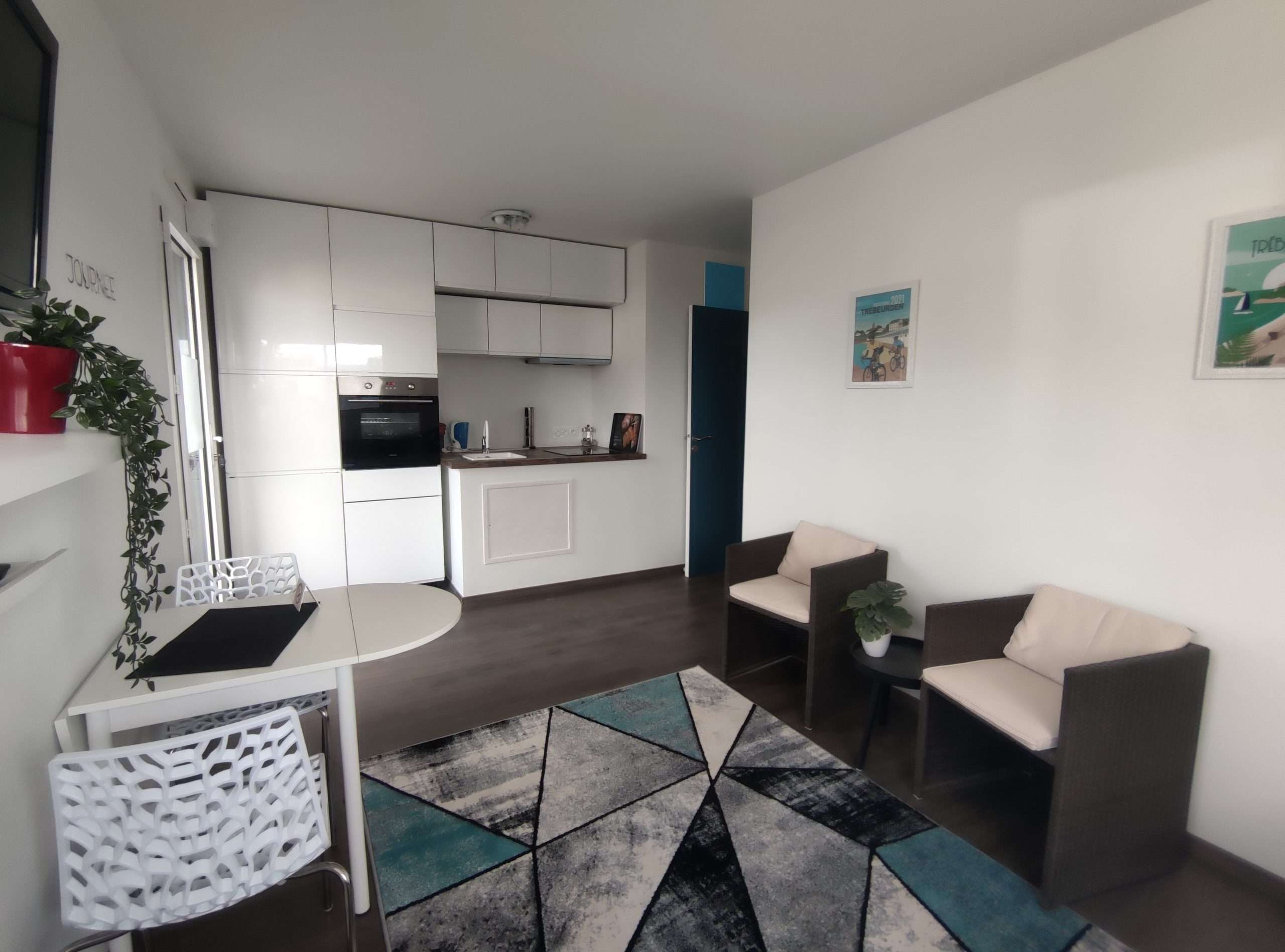 L’appartement dispose d’un salon confortable avec télévision à écran plat, parfait pour vous relaxer après une journée sur la plage de Trébeurden. La cuisine entièrement équipée vous permettra de préparer facilement de bons petits plats maison.